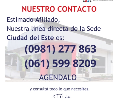 Andrea Aquino2025-02-07 11:17:252025-02-10 13:50:35Lineas directas para contacto en la Sede Ciudad del Este